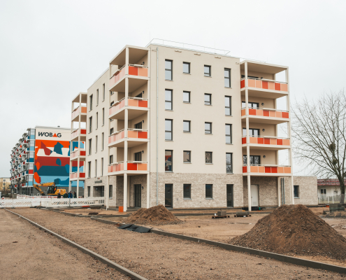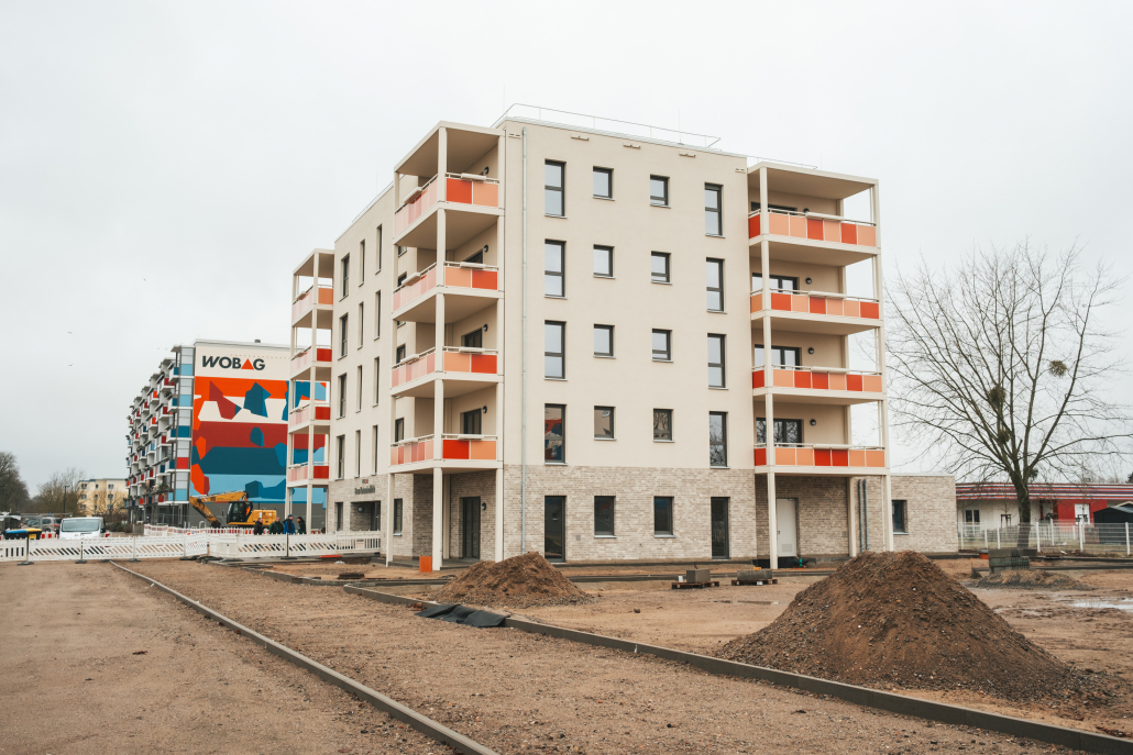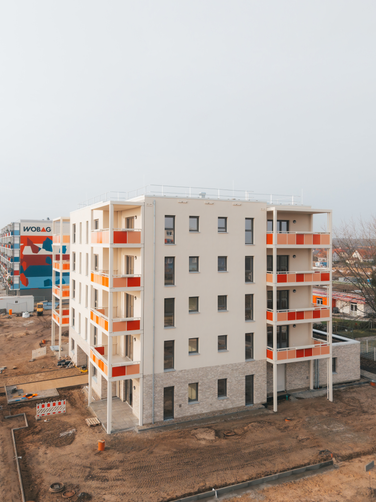 Bei dem Neubau handelt es sich um ein Mehrfamilienhaus mit 18 Wohneinheiten. Zusammen mit dem Planungsbüro BBP wurde ein Stadthaus in Massivbauweise entwickelt, in welchem ein Wohnungsmix aus 2-,3- und 4-Raumwohnungen vorliegt. Die Wohnungen sind um ein zentrales innenliegendes Treppenhaus angeordnet und haben eine Größe von 63 m² bis zu 99 m².