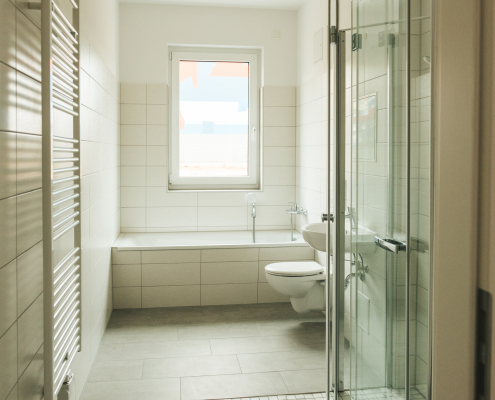 - Bad mit Dusche und Wanne, türhoch gefliest